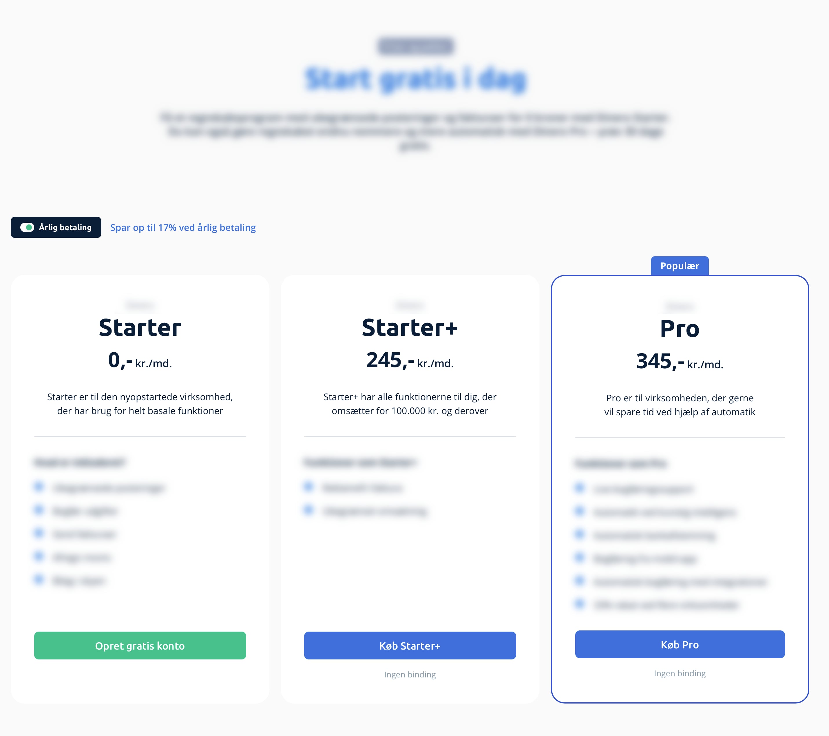 Den klassiske 3-trinsmodel er effektiv, fordi den skaber en naturlig prisforankring. Basic fungerer som reference, Premium sætter et højt anker – og Pro bliver det “fornuftige” valg for langt de fleste.